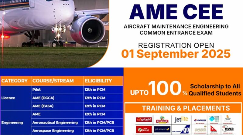 The organizing authority of the Aircraft Maintenance Engineering Common Entrance Examination (AME CEE) proudly announces that registration for AME CEE 2026 is now open. Students from all across India aspiring to build successful careers in aviation, aerospace, and allied fields can apply online at the official website https://www.amecee.in.