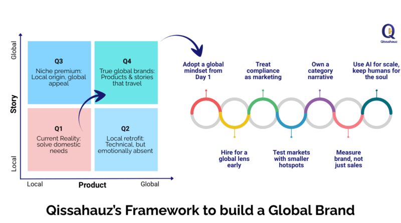 India’s exports hit a record ~$825 billion in FY25, with services alone reaching $387.5 billion. Domestically, by 2030, India is forecast to become a $6 trillion consumption economy, with nearly 80% of households middle-income and a billion digital natives reshaping categories. That’s a powerful launchpad. As Qissahauz argues, the real prize isn’t just selling more at home, it’s building Indian brands that travel, so Indian names earn value even when the sale happens abroad. In other words, India must move from being the “factory of the world” to the face of the world.