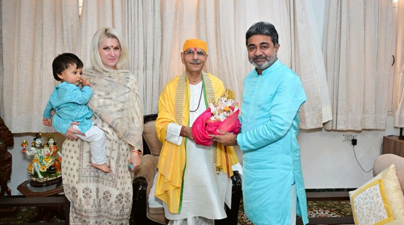 October 6, 2025:-New Delhi: During the ongoing Shri Ganesh-Lakshmi Mahayagya 2025 at Anand Dham Ashram, New Delhi, Dr. Abhishek Verma, Chief National Coordinator (ShivSena NDA Alliance & Elections), visited the ashram along with his family.