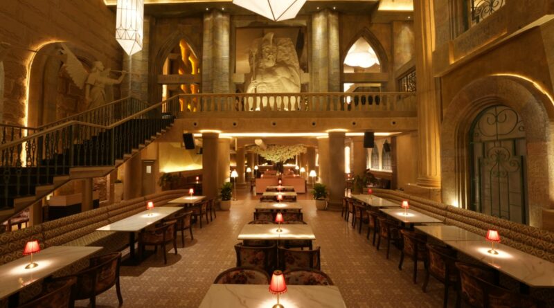 Small design cues reinforce the theme. A gladiator figure sets the tone at the entrance. Mythic creatures sit near fountains. Bartenders operate on an elevated bar that feels like a stage. For all this drama, the space remains functional. Aisles stay wide, lighting stays balanced and seating flows smoothly.