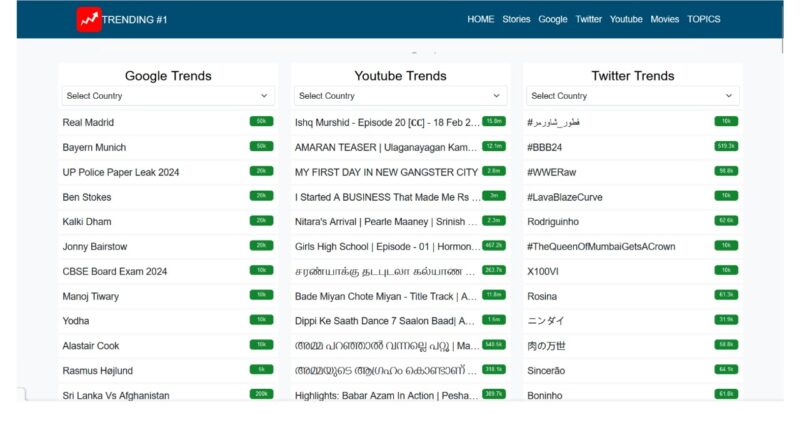 Recognizing that Twitter is just one piece of the puzzle, Trending-1.com seamlessly integrates Twitter trends with insights from other platforms. By incorporating trends from Google, YouTube, and top news stories, Trending-1.com offers users a comprehensive view of the digital landscape, enabling them to connect the dots between different online conversations.